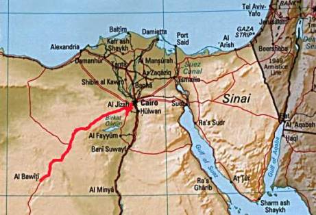 Olaf stellt einen Zeitplan auf: „Um 18h sind wir in Kairo, um 19h sind wir durch Kairo durch und dann haben wir noch eine Stunde um uns ein Plätzchen zum schlafen in der Wüste zu suchen. Gesagt, getan: Jochen stürzt sich in den Stadtverkehr von Kairo und schwitzt Blut und Wasser.