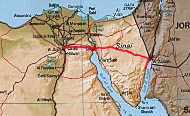 Sitzen zusammengedrückt auf der Rückbank des Autos verbringen müsste, weil ich dort keine Luft mehr bekommen habe. Zum ersten Mal sehen wir den Sinai im Hellen: Sand, Steine, Sand, Steine, Sand, ...